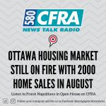 The tight housing supply and historically low interest rates continue to drive bidding wars for properties in Ottawa. For the first time in many months there are more listings than sales. Home sales were up 17% year over year as of the end of August. There were 2000 home sales in Ottawa area in August compared to the 5-year average of 1700 home sales in the Ottawa area.
